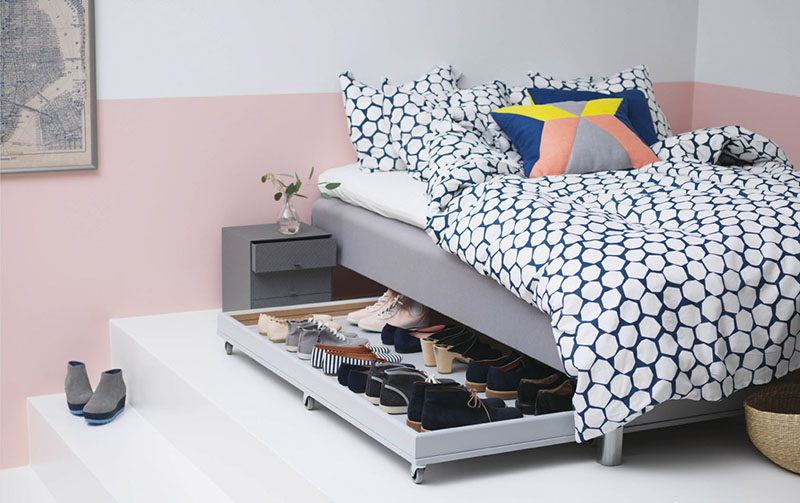 Υπάρχουν πολλές ιδέες και τρόποι αποθήκευσής τους για να τα προσέχουμε όπως τους αξίζουν. Για παράδειγμα μπορούμε να τα βάλουμε κάτω από κρεβάτι όπως βλέπετε στην κεντρική φωτό. Πως φτιάχτηκε αυτό το συρόμενο πλαίσιο; Ηταν η πόρτα ενός ντουλαπιού κουζίνας της ΙΚΕΑ που με λίγη μετατροπή και κάμποσες ρόδες έγινε μία πρωτότυπη παπουτσοθήκη!