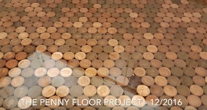 Έχουν γίνει πολλά τέτοια “floor projects” στην Αμερική, ωστόσο στην Βρετανία δεν το είχε δοκιμάσει κάποιος μέχρι που ήρθε η σειρά μίας οικογένειας που αποφάσισε πως είχε έρθει η ώρα να καλύψει το πάτωμά της κουζίνας της με κέρματα. Για την ακρίβεια 27.000 χιλιάδες pennies!