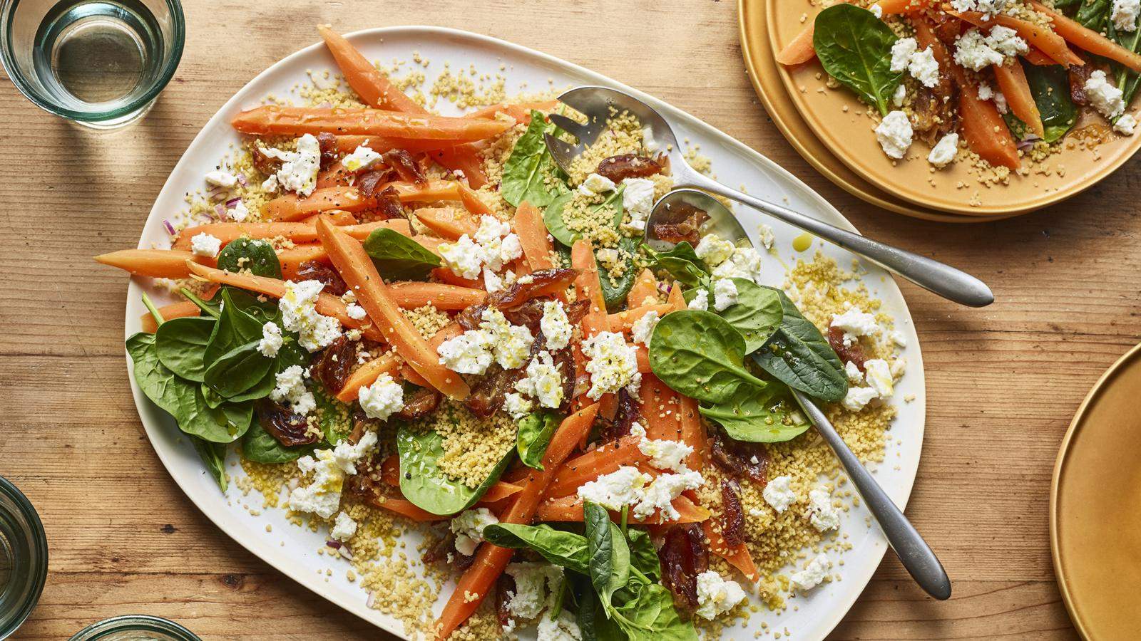 Ανακαλύψτε την ευελιξία των slow cookers με αυτή την εύκολη, ουσιαστική ζεστή σαλάτα. Τα καρότα σιγοψήνονται και στη συνέχεια με το σιγοψήσιμο ψήνεται το κουσκούς στο slow cooker. Συστατικά 800g καρότα (διαλέξτε τα μικρότερα), όλα ξεφλουδισμένα και οποιαδήποτε μεγαλύτερα κομμένα κατά το ήμισυ ή τεμαχισμένα κατά μήκος, ώστε όλα να έχουν το ίδιο πλάτος 1 …