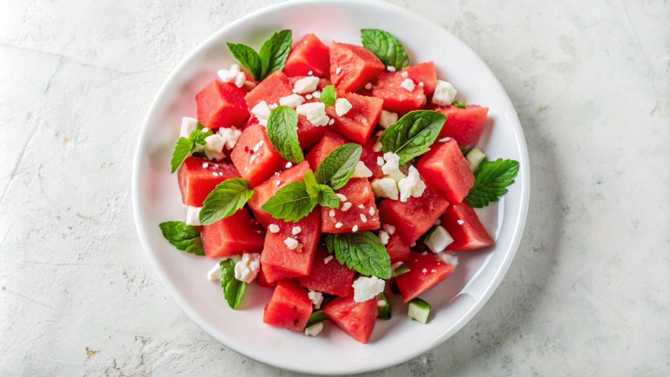 Όταν ο ήλιος καίει και η όρεξή σου ζητάει κάτι ανάλαφρο αλλά γεμάτο γεύση, αυτή η σαλάτα είναι η πιο απολαυστική λύση! Ο τέλειος συνδυασμός από γλυκό καρπούζι, αλμυρή φέτα και αρωματικό δυόσμο σε μεταφέρει με κάθε μπουκιά σε μια αυλή στο νησί, κάτω από τη σκιά μιας συκιάς. Είναι η σαλάτα που θα κλέψει την παράσταση σε κάθε καλοκαιρινό τραπέζι – και θα σου φτιάξει τη διάθεση στο λεπτό!