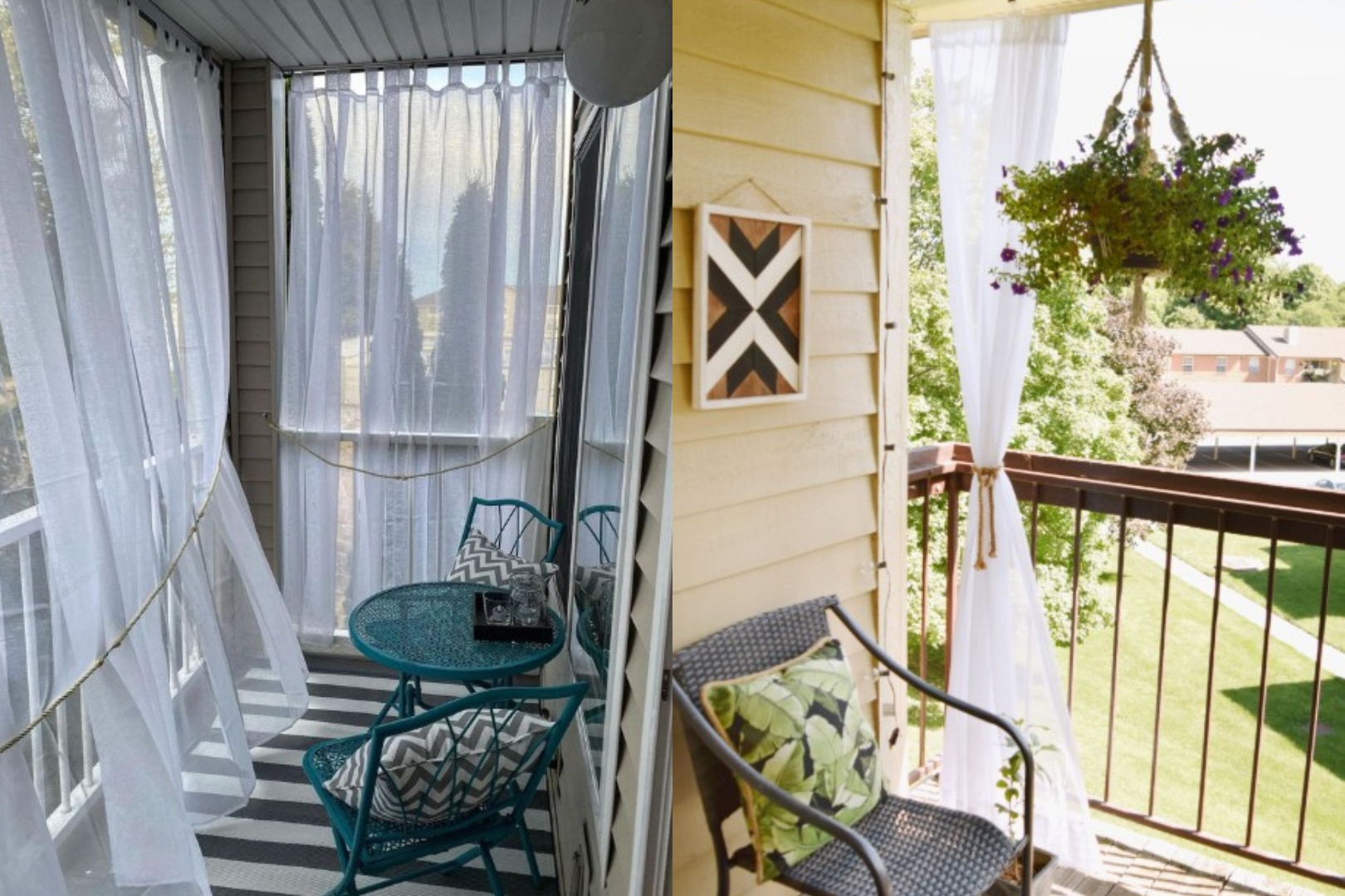 • Με κουρτινόξυλο: Αν έχεις στέγαστρο στο μπαλκόνι σου, μπορείς να τοποθετήσεις ένα μεταλλικό κουρτινόξυλο. Είναι η πιο κλασική και κομψή επιλογή, σαν να είσαι μέσα στο σπίτι.