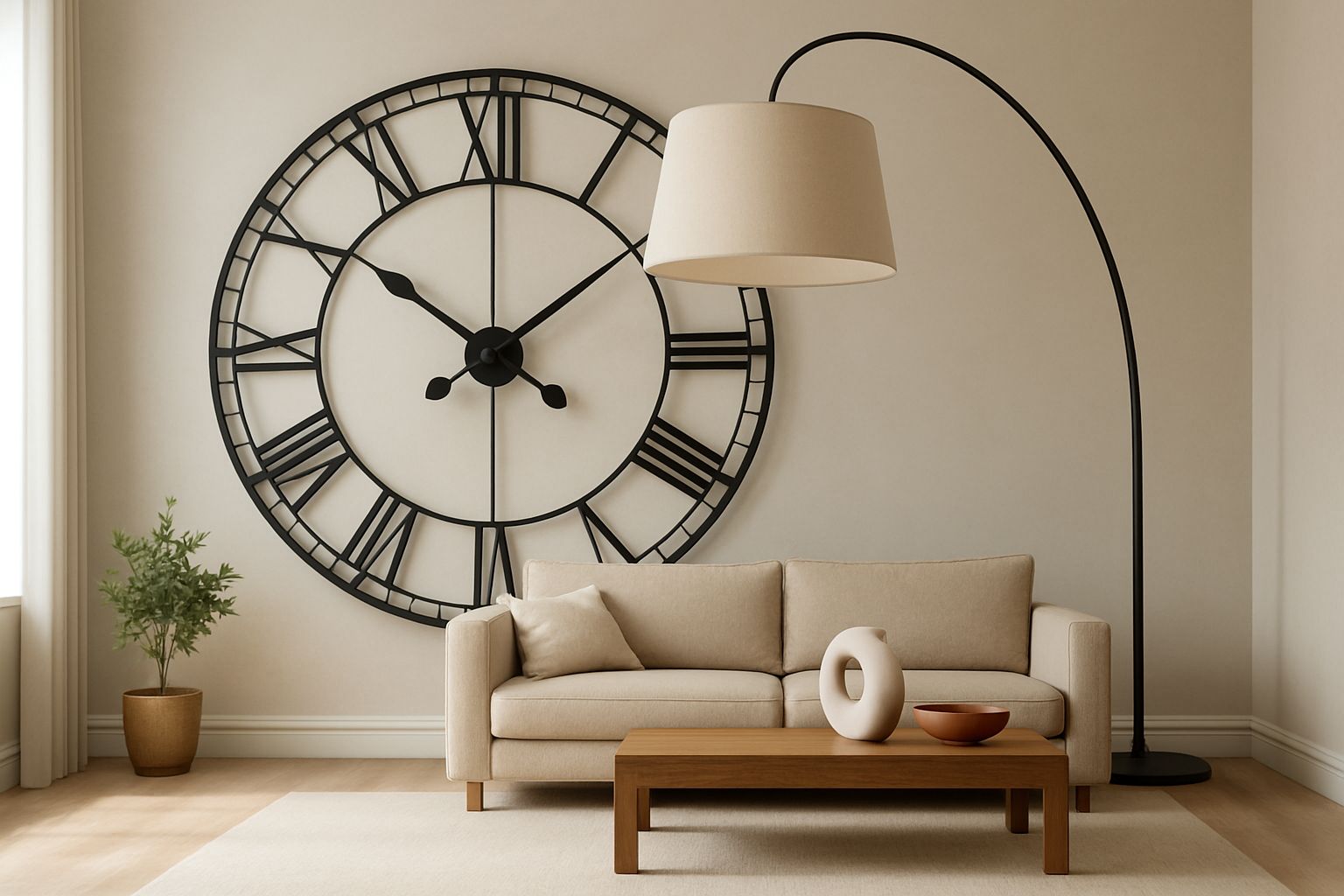 Ας πάρουμε, για παράδειγμα, το τεράστιο ρολόι τοίχου. Αντί να είναι ένα διακριτικό μέσο μέτρησης του χρόνου, μετατρέπεται σε ένα επιβλητικό οπτικό κέντρο (focal point). Οι δείκτες του γίνονται σχεδόν γλυπτικές λεπτομέρειες, ενώ το μέγεθός του αγκαλιάζει τον τοίχο, δίνοντας στον χώρο μια έντονη αίσθηση θεατρικότητας και βιομηχανικού (industrial) ή vintage χαρακτήρα. Αυτό το μόνο κομμάτι είναι ικανό να αλλάξει τη διάθεση και τον ρυθμό ολόκληρου του δωματίου.