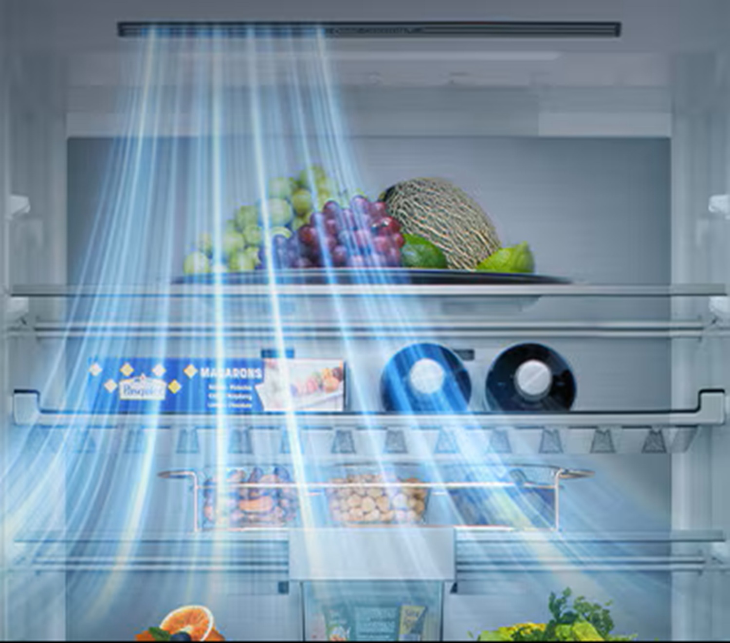 Στο εσωτερικό, η σειρά εξοπλίζεται με προηγμένη τεχνολογία ψύξης LinearCooling™[2] σε συνδυασμό με Multi Air Flow και DoorCooling+™[3], ώστε η θερμοκρασία να παραμένει σταθερή και ομοιόμορφη σε όλα τα ράφια και τα σημεία αποθήκευσης με αποτέλεσμα να διατηρείται η φρεσκάδα των τροφίμων. Τα συρτάρια FRESHConverter™[4] και FRESHBalancer™[5] συμβάλλουν στην καλύτερη διαχείριση θερμοκρασίας και υγρασίας ανάλογα με τον τύπο των τροφίμων, ώστε φρούτα, λαχανικά και άλλα προϊόντα να διατηρούν την ποιότητά τους για μεγαλύτερο διάστημα.