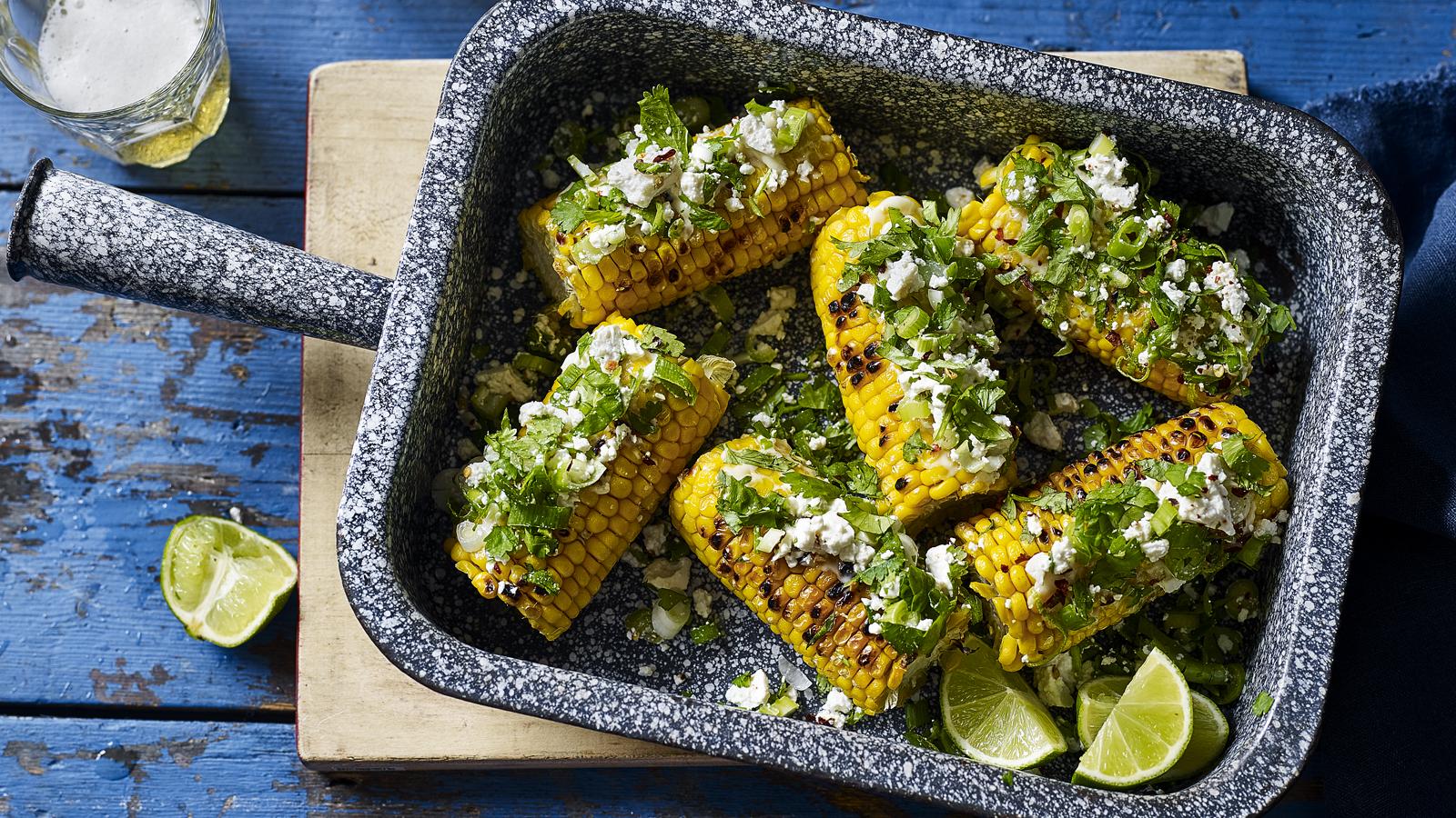 Αλείφεις κάθε καλαμπόκι με μαγιονέζα και το περνάς από το μείγμα τυριού ώστε να καλυφθεί παντού. Σερβίρεις αμέσως με φέτες λάιμ στο πλάι για έξτρα φρεσκάδα.