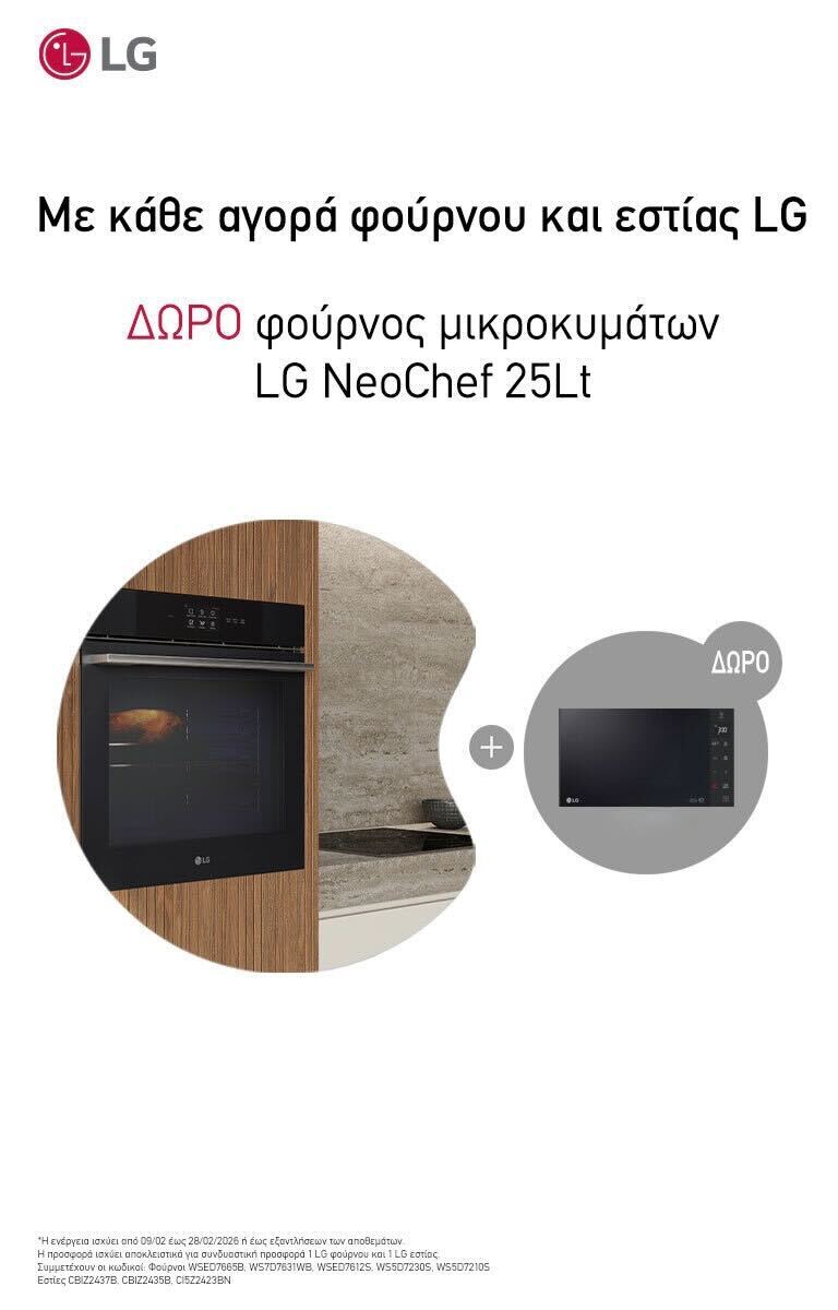 Στο πλαίσιο της προωθητικής ενέργειας της LG, με κάθε συνδυαστική αγορά επιλεγμένων κωδικών εντοιχιζόμενου φούρνου και επαγωγικής εστίας[11], ο καταναλωτής αποκτά δώρο ένα φούρνο μικροκυμάτων LG NeoChef™ 25 λίτρων.[12]