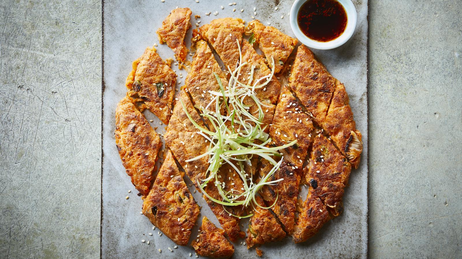 Αν αγαπάς τις γεύσεις που ξυπνούν τον ουρανίσκο και δεν φοβούνται λίγη ένταση, τότε αυτή η τηγανίτα με kimchi θα γίνει η νέα σου αδυναμία. Είναι απλή, γρήγορη και ιδανική για ένα διαφορετικό μεσημεριανό, ένα ελαφρύ βραδινό ή ακόμα και για μεζέ με φίλους. Το μυστικό της βρίσκεται στην ισορροπία ανάμεσα στο τραγανό εξωτερικό και το ζουμερό, αρωματικό εσωτερικό.