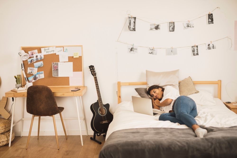 Το κρεβάτι είναι το πιο σημαντικό σημείο στο δωμάτιο γιατί εκεί μαζεύεται όλη η ενέργεια της ημέρας. Ένα καλό στρώμα που στηρίζει σωστά το σώμα που ακόμα αναπτύσσεται είναι η καλύτερη επένδυση που μπορείτε να κάνετε. Αν το δωμάτιο είναι μικρό μπορείτε να επιλέξετε ένα κρεβάτι με μεγάλα συρτάρια από κάτω για να κρύβονται όλα τα πράγματα εύκολα. Επίσης με μερικά μεγάλα μαξιλάρια και ένα ωραίο φωτιστικό το κρεβάτι γίνεται το τέλειο μέρος για να αράξει ο έφηβος με το κινητό ή ένα βιβλίο νιώθοντας ότι βρίσκεται στον δικό του προσωπικό παράδεισο.